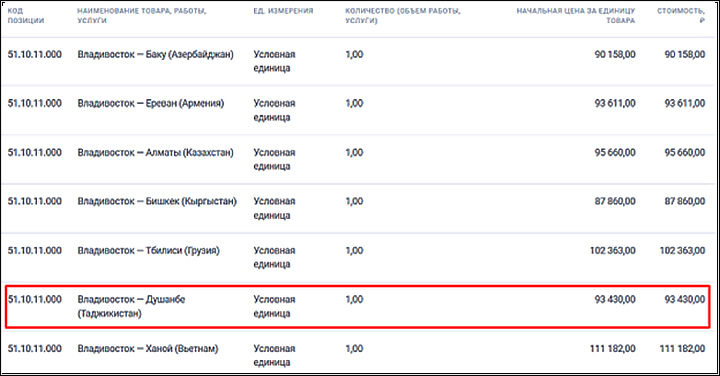 "Госзакупка авиабилетов для депортируемых мигрантов в Приморье". Скриншот страницы сайта zakupki.gov.ru