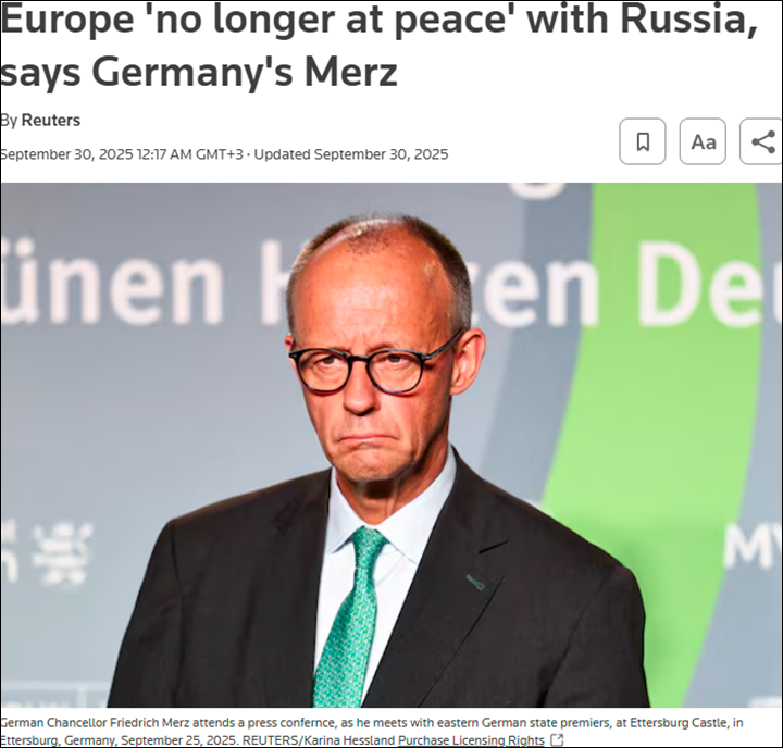 "Европа больше не в мире с Россией", сказал Мерц. И загрустил. Скриншот: "Рейтер"