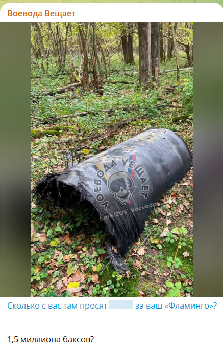 Завалили "Фламинго". Скорость — 600. Высота — 100. Движок, как я и говорил АИ-25ТЛ. <…> Сбит "БУКом". Как цель — простейшее. <…> [Штуковина] здоровая, если начнут пускать больше, будет некомфортно.  Почти все нутро — китайское. Гражданское. Реально на коленке собранная. Техничка маркерная заводская вся на Русском почти.  БЧ — [как у ФАБа], но корпус не советский, пошире.