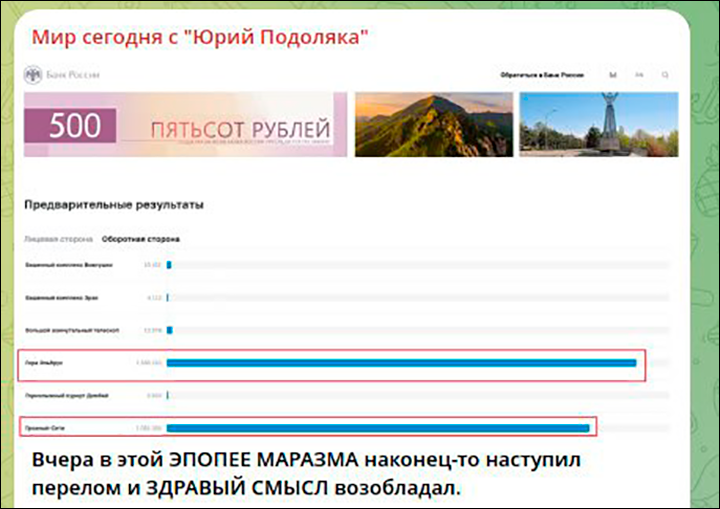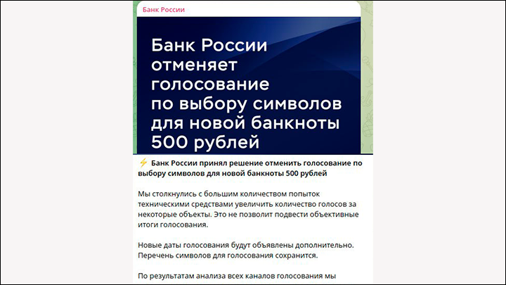 Пока верстался номер Банк России принял решение отменить голосование по выбору символов для новой банкноты 500 рублей.