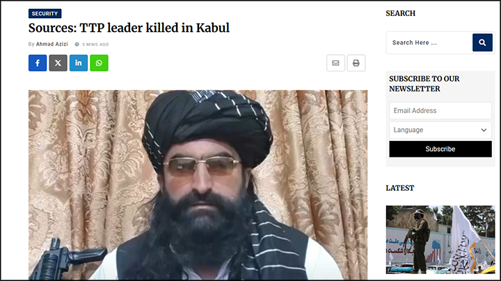 Нур Вали Мехсуд, лидер пакистанской группировки "Техрик-и-Талибан Пакистан" (ТТП), убит в результате удара беспилотником, нанесённого в Кабуле в четверг вечером. Скриншот: AmuTV