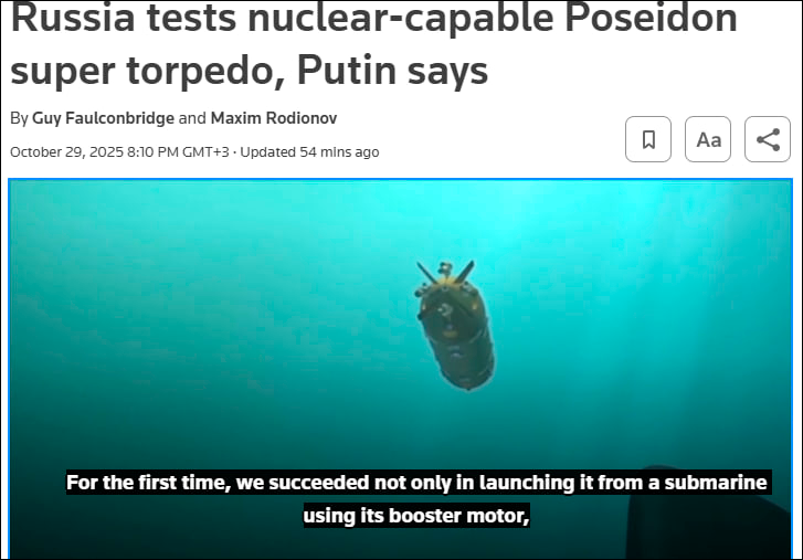 "Посейдон" отправляется в путь к берегам США. Скриншот: "Рейтер"