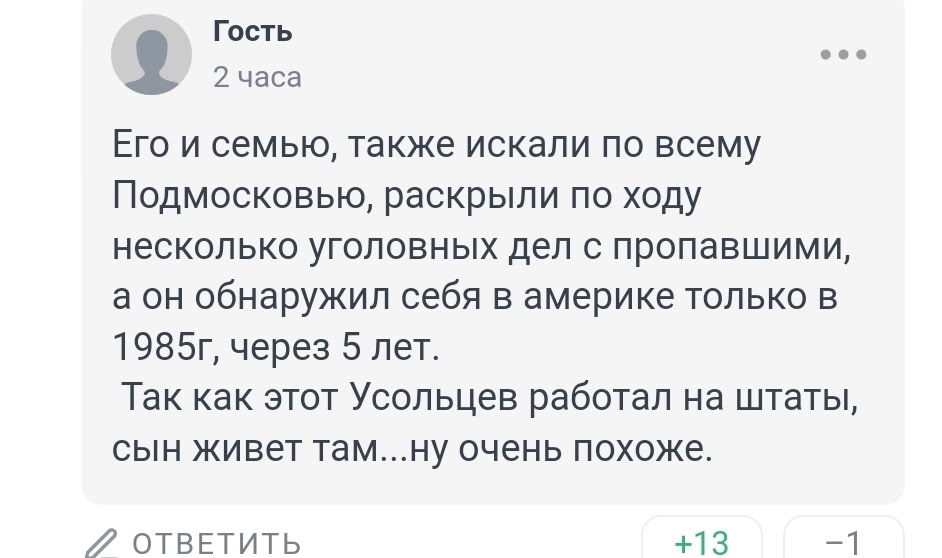 У Сергея Усольцева действительно есть сын от предыдущего брака, который сейчас живёт в США. Скриншот: форум поисковиков