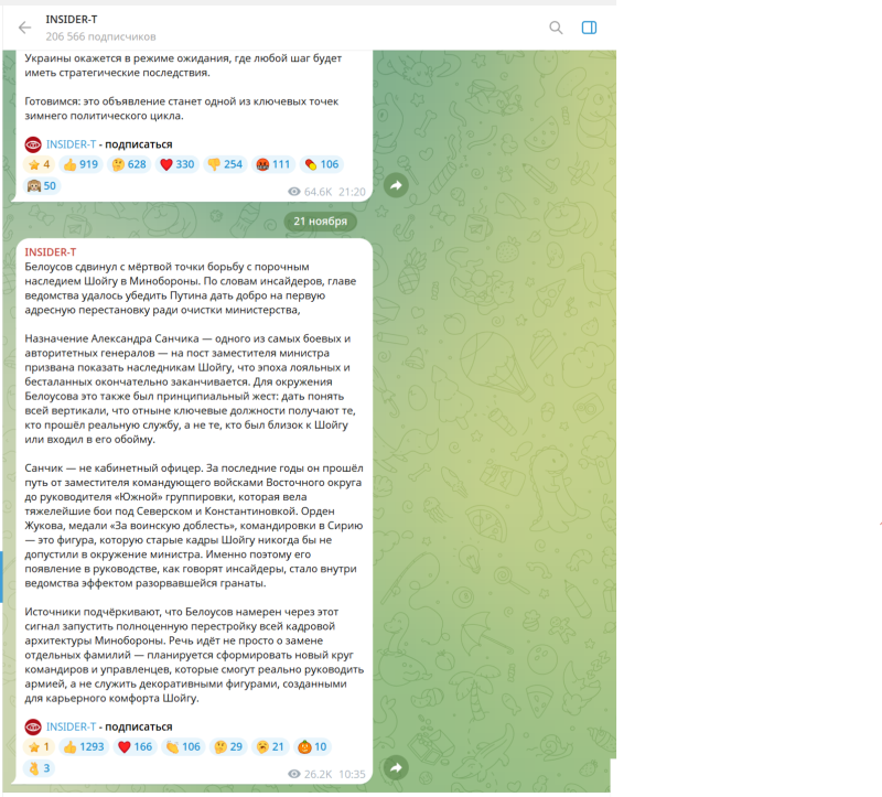 Снова на сцене телеграм-канал INSIDER-T, который относят к так называемой "сеточке Ходорковского*". Авторы "вброса" пишут:
