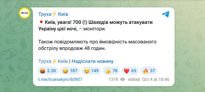 Известный своей оголтелой русофобией украинский канал "Труха" забился в истерике. Там сообщали, что ночью "неньку" навестят до 700 дронов "Герань" (которые украинцы упорно продолжают именовать "Шахедами").