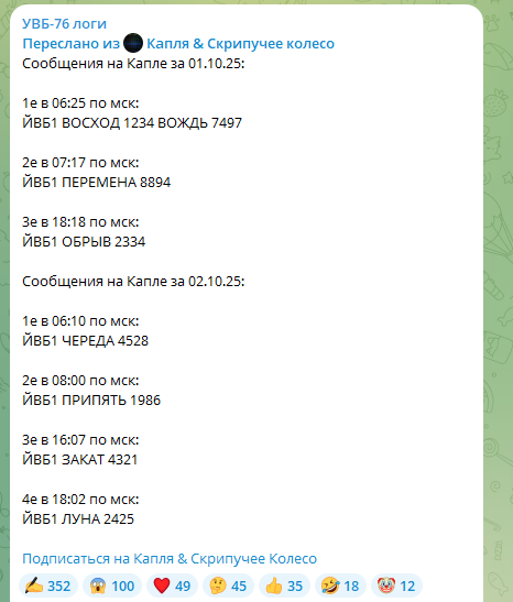 1 и 2 октября мониторинговые ресурсы зафиксировали необычную активность "Капли". Вместо прерывистых сигналов, постоянно звучащих в эфире (за что станция и получила своё название), пошли слова - зашифрованные послания.