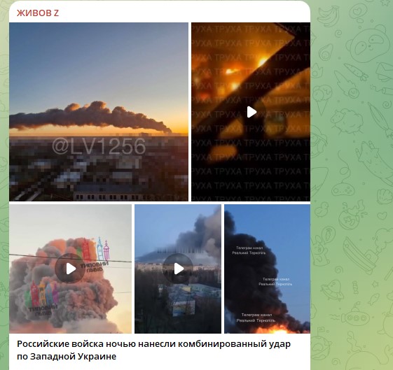 - Электроподстанция Роздил, Львовская область (49.46044, 24.14668) - около пяти ракет Х-101;