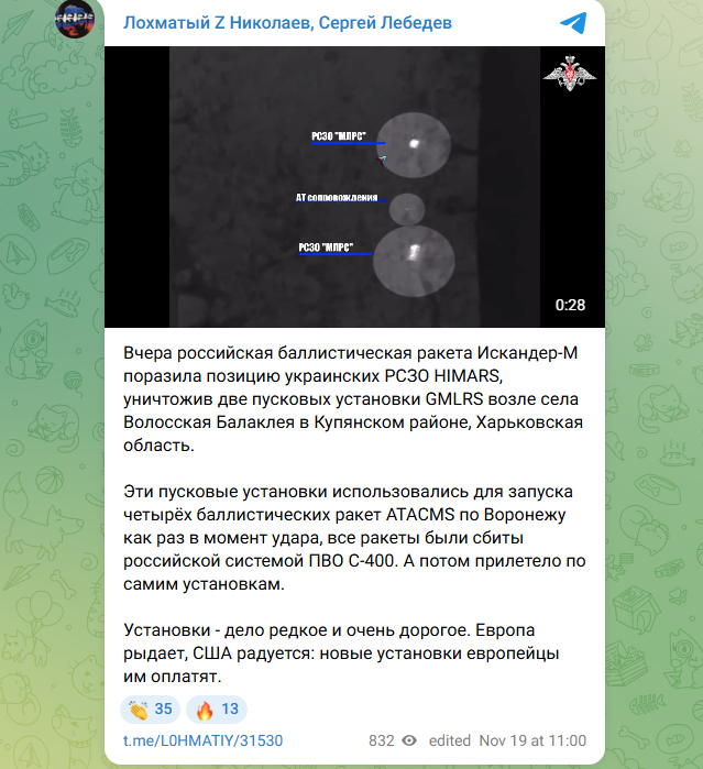 Возле села Волосская Балаклея наши разведчики вычислили место базирования сразу двух пусковых установок GMLRS (там позиции украинских РСЗО HIMARS). Украинские боевики решили, что с этих пусковых лучше всего запускать ракеты ATACMS.