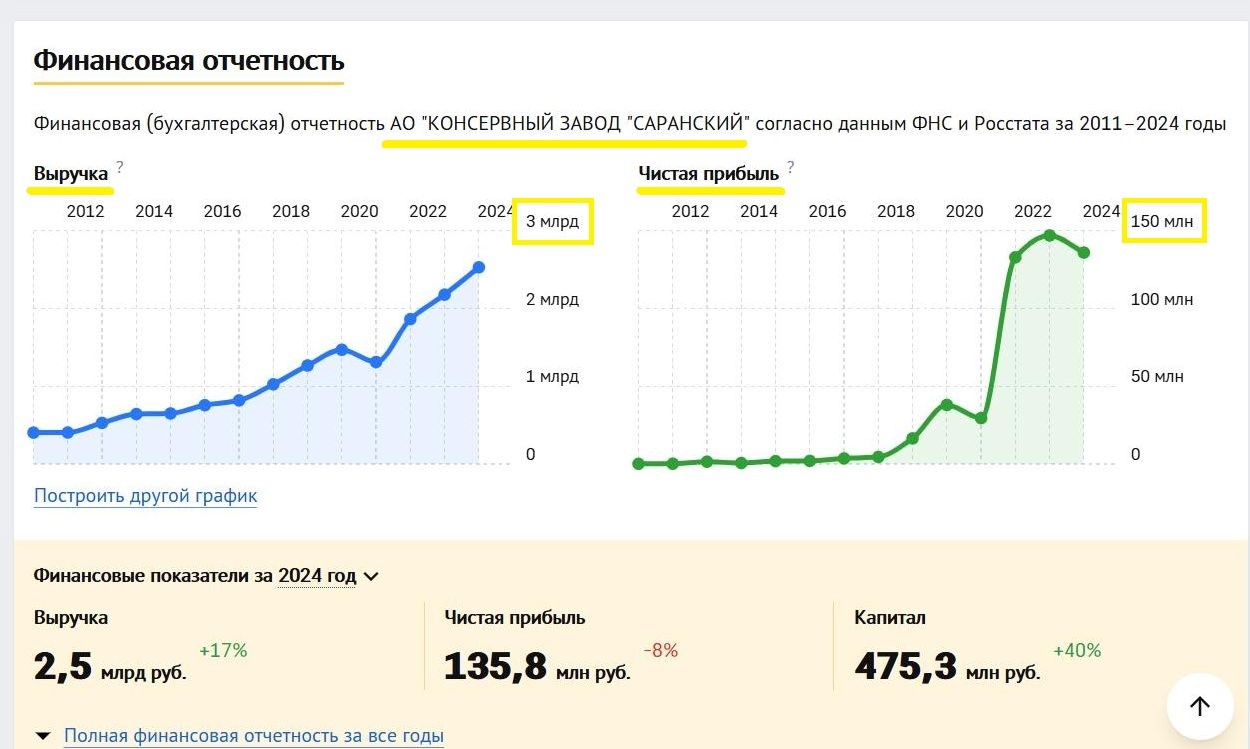 АО "Консервный завод "Саранский" – весьма прибыльное предприятие. Скриншот: интернет-сайт checko.ru