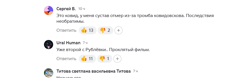 "Вот сразу пришло в голову, что умер ещё один актер из этого сериала. Тоже молодой ещё",