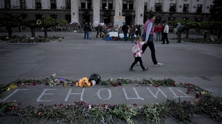 Простые итальянцы создали импровизированный мемориал в честь жертв трагедии в Доме Профсоюзов в Одессе в 2014...